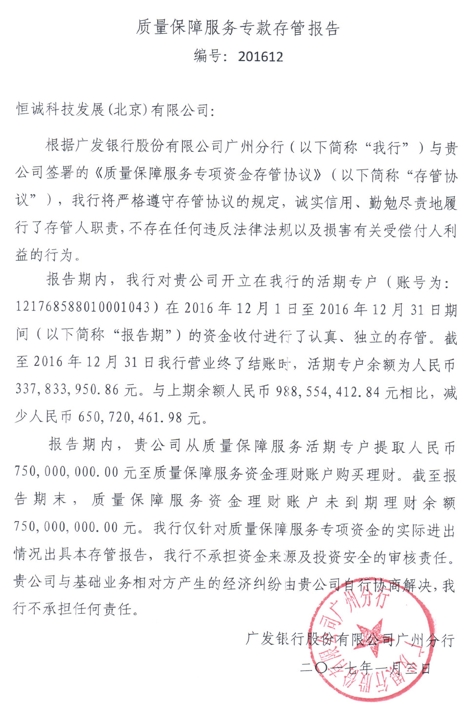 余额情况,并提供银行的资金存管报告,供广大用户查阅。